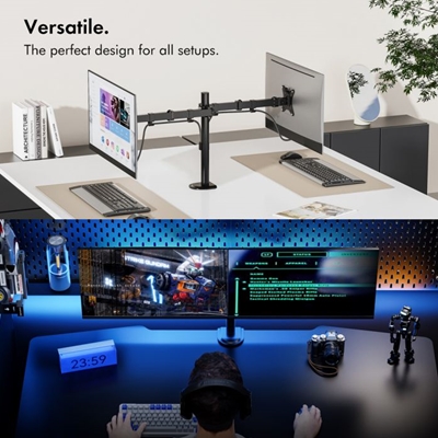 VonHaus Dual Monitor Stand for 13-32 Inch Screens, Twin Monitor Mount with Desk Clamp, Height Adjustable, Easy Assemble Stand with Full Tilt, Rotation & Swivel Arms, VESA 75×75 & 100x100mm