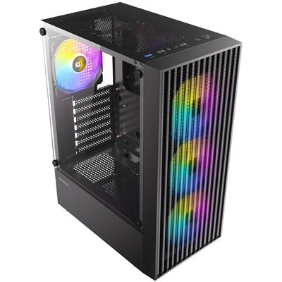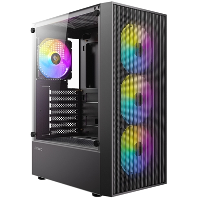 The Antec AX27 RGB Elite is a stylish and airflow-optimized mid-tower ATX case designed for gamers and PC builders seeking both performance and aesthetics. Featuring a full mesh front panel and a tempered glass side panel, it delivers superior ventilation and showcases your components with flair. The case comes pre-installed with four 120?mm FRGB fans—three at the front and one at the rear—offering vivid fixed-color lighting without the need for external RGB controllers or software.