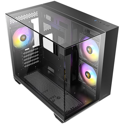 Triple Transparent View: Seamless tempered glass panels on the top, front, and side for an unobstructed view of your build.