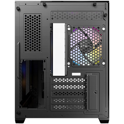 2 x 120mm ARGB reverse fans on the right side, 1 x 120mm ARGB fan in the rear