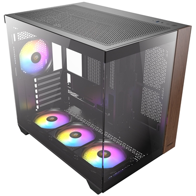 Stunning Design & Panoramic View The Antec CX800 Wood ARGB mid-tower case combines sleek aesthetics with advanced functionality. It features a unique 270° panoramic tempered glass side panel, allowing you to showcase your gaming components from almost every angle. The case is designed with high airflow in mind, offering multiple fan positions and ARGB lighting to elevate your gaming experience.