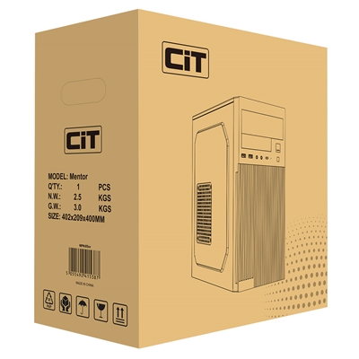 The CiT Mentor is a smart state-of-the-art business PC case suitable for Micro-ATX and Mini-ITX Motherboards, ideal for any professional workspace. The Micro impresses with its sleek black exterior. The front panel is a distinctive one with a focus on proficient cooling, it is the perfect PC for any modern office setting. Behind the front panel two 120-millimeter fans can be installed and the rear of the case an 80-millimeter fan is pre-installed.