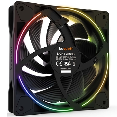 be quiet! Light Wings PWM High Speed Addressable RGB Fan, 120mm, 2500RPM, 4-Pin PWM Fan & 3-Pin ARGB Connectors, Black Frame, Black Blades, ARGB Lighting on Front & Rear