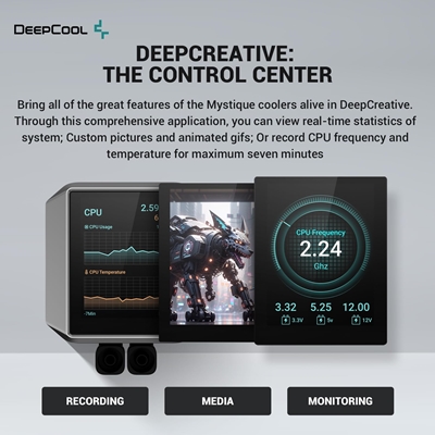 The MYSTIQUE series is DeepCool’s new line of liquid coolers with highly sought-after customizable LCD screens. Bring your creative style to life with customized images and animated gifs on the brilliant 2.8″ TFT LCD screen! The pump has also been upgraded and optimized to provide better cooling than ever before.