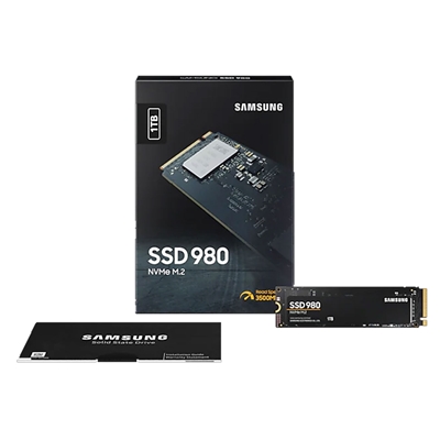 Samsung 980 (MZ-V8V1T0BW) 1TB NVMe SSD, M.2 Interface, PCIe Gen3, 2280, Read 3500MB/s, Write 3000MB/s, 5 Year Warranty