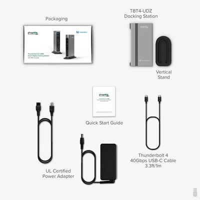 Plugable TBT4-UDZ ThunderBolt 4 Quad Monitor 100W USB-C PD 2.5GbE Docking Station