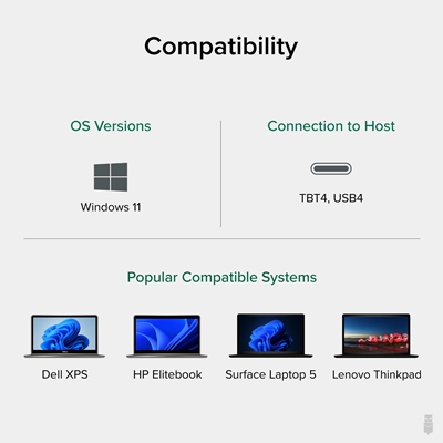 This Plugable docking station offers driverless compatibility with Windows 10 and newer. 4K 120Hz requires full-featured USB4 or Thunderbolt 4 port. Not recommended for Apple MacOS devices