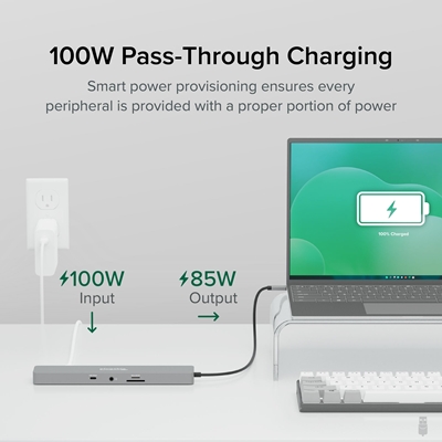 Supports USB-C Power Delivery (PD) input up to 100W, with 8-15W intelligently reserved for the hub and your peripherals.
