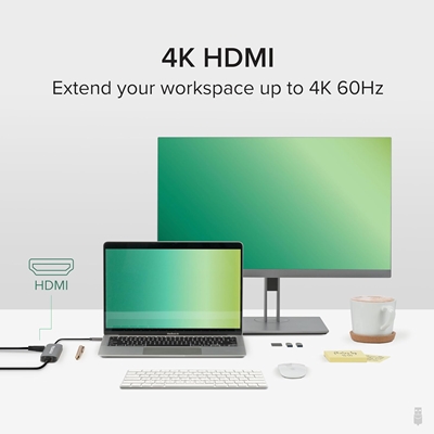 The 4K USB-C to HDMI adapter can push your creativity to the next screen with resolutions up to 4K 60Hz. The sturdy and compact metal construction means the USB Type C hub packs perfectly into a pack