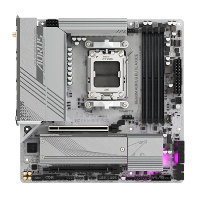 Gigabyte B650M AORUS ELITE AX ICE AMD AM5 Socket Motherboard, Micro-ATX, 4x DDR5 Slots, 2x M.2 Sockets, Fitted I/O Shield, 2.5GbE LAN, Wi-Fi 6E, 1x DisplayPort / 1x HDMI Port