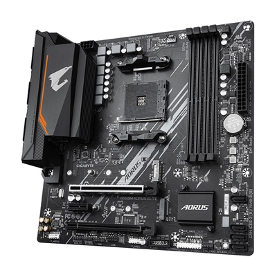 Gigabyte B550M AORUS ELITE Ultra Durable AMD AM4 Socket Motherboard, Micro-ATX, 4x DDR4 Slots, 2x M.2 Sockets, Fitted I/O Shield, GbE LAN, 1x DVI-D / 1x HDMI Port