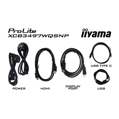iiyama ProLite XCB3497WQSNP-B1 34” UWQHD curved monitor with USB-C dock, LAN, KVM switch and 15cm height adjustable stand
