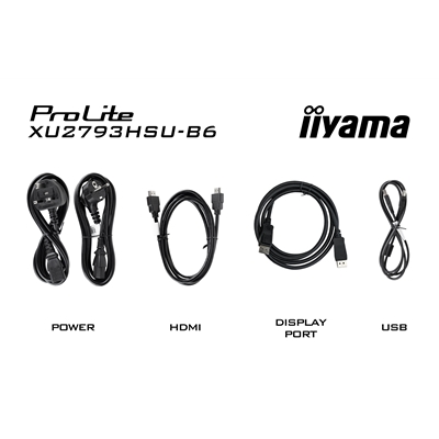 iiyama Prolite XU2793HSU-B6 27 inch Frameless IPS Monitor, Full HD, 1ms, USB Hub, HDMI, DisplayPort, 100Hz, HDCP, Speakers, Black, Internal PSU, VESA