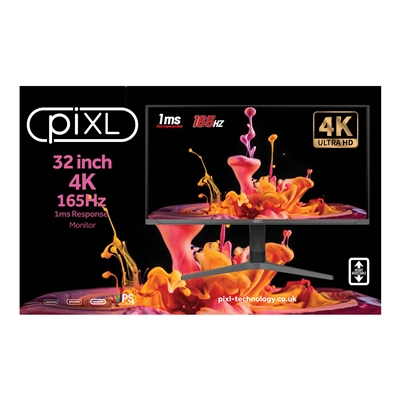 piXL CM32G7 32 Inch 4K IPS Monitor, 165Hz, 1ms, Frameless, HDMI, DisplayPort, USB-C, USB-A x 2, 3.5mm Audio Port, FreeSync & G-Sync Compatible, Black, RGB Lighting, VESA Mount, Height Adjustable, 3 Year Warranty