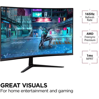 The ViewSonic VX3218C-2K features a 32″ QHD display with a 1500R curve for bigger, more immersive gameplay. The hyper-responsive 165Hz refresh rate renders your games with ultra-smooth graphics. A clean design removes the bulk of larger monitors, and a borderless display with sleek dimensions enhances this big screen experience. AMD FreeSync™ Premium prevents screen tearing and stuttering for fluid gameplay and the 1ms MPRT response time enables you to react in-game with speed and precision. The VX3218C-2K is also equipped with ViewSonic’s exclusive ViewMode™ presets, which offer optimized screen performance for a variety of needs, such gaming, editing, or watching movies. In addition, a DisplayPort and HDMI inputs offer flexible connectivity for gaming and entertainment.