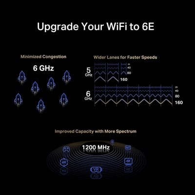 Speeds up to 2402 Mbps (6 GHz) + 2402 Mbps (5 GHz) + 574 Mbps (2.4 GHz)