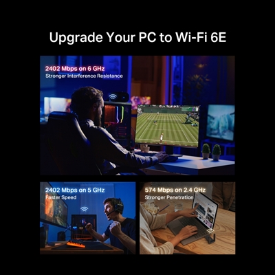 MA86XH arms your PC with Wi-Fi 6E technology and the brand-new 6 GHz band, unlocking your WiFi 6E router’s full potential. It seamlessly handles all your online activities, from HD video streaming to lag-free gaming and web browsing, thanks to its high-speed tri-band WiFi.