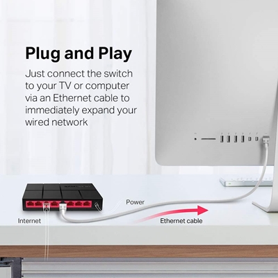Forget about complicated installation. Just connect the switch to your TV or computer via an Ethernet cable to immediately expand your wired network. Absolutely no configuration is required.