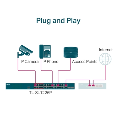 TP-Link TL-SL1226P 24-Port Metal 10/100Mbps + 2-Port Gigabit Unmanaged PoE+ Switch (250W)