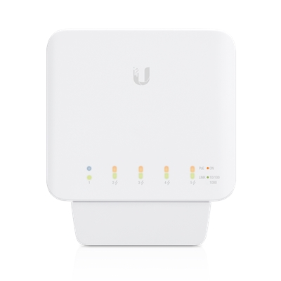 The UniFi Switch Flex is a managed, Layer 2 Gigabit switch with auto-sensing 802.3af PoE support.