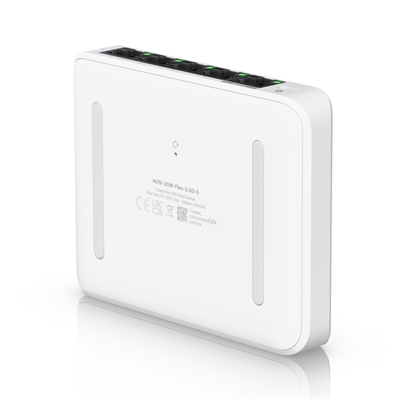 Compact, 5-port 2.5G switch that can be powered with PoE or a USB-C adapter (included).