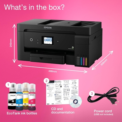 Looking for a compact, economical, and colour printer that delivers A3 prints? The ET-15000 shows it’s possible. This EcoTank offers A4 print, scan, copy and fax, plus the option to print A3 from the rear media feed—all with an exceptionally low cost per page. Jobs can be accomplished quickly thanks to fast print and scan speeds, a 250-sheet front paper tray, and a 35-sheet A4 ADF.