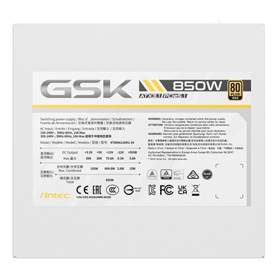 Antec GSK ATX3.1 850W Power Supply, White,80 PLUS Gold, Full Modular, PCIe 5.1, JP Capacitors, Silent FDB Fan, CircuitShield Protection