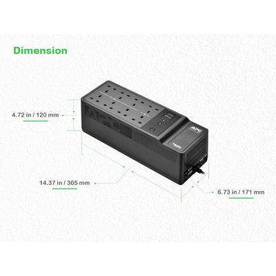 APC Back-UPS BE500G2-UK: 500VA/300W Uninterruptible Power Supply with Surge Protection, 8x Outlets, USB Port, Wall-Mountable