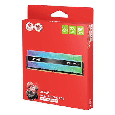 LANCER NEON RGB is the world’s first environmentally friendly RGB DDR5 gaming memory module with a heatsink made from 50% PCR plastic materials and FSC certified packaging, lowering carbon emissions by 72.5%. Add a shining gamer’s style to your PC while doing your part for the environment.