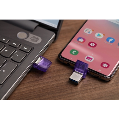 Kingston DataTraveler microDuo 3C 256GB OTG Dual USB-A to USB-C USB 3.2 Gen 1 Flash Drive, Purple