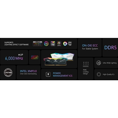 one-click OC technology, the DELTA RGB DDR5 is also equipped with PMIC and on-die ECC to ensure stable, efficient power distribution across all components for system stability and performance.