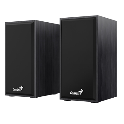 Genius SP-HF180 6W Wooden Desktop USB 2.0 Stereo Speakers with 3.5mm Audio Jack & Volume Control, Black