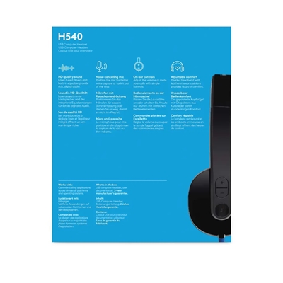 Logitech H540 USB Headset with Noise-Cancelling Mic and On Ear Controls